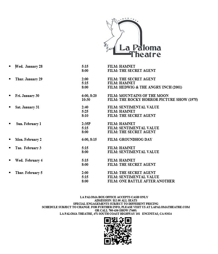 LA PALOMA BOX OFFICE ACCEPTS CASH ONLY
